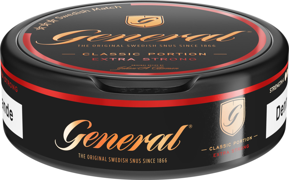 General has a taste that many snusers recognize. The taste is spicy, with some peppery and touch of bergamot. Made of a mixture of twenty two different kinds of tobacco.